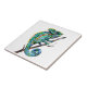 traditional watercolor artwork of a chameleon climbing a tree branch on a ceramic tile