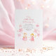 Flutter and twirl, it's time for the birthday girl! This cute birthday invitation is the perfect choice for a young girl's magical celebration. Whether it's a whimsical fairy first, magic one birthday or a fantasy forest-inspired second, third, or fourth, this card ensures a touch of magic in every word. Its minimalist hand-drawn watercolor design, paired with elegant cursive and crisp serif typography, gives the invitation a modern, clean, simple yet endearingly sweet appearance. The centerpiece of this design features two delightful fairies in pink dresses, dancing gracefully among pink flowers and blush blossoms. Their rosy cheeks and cute little wings radiate pure innocence and allure. Guaranteed to charm its recipients, this fairy-tale-themed invitation promises a fantastical celebration ahead for your little magic one.