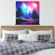 Abstract art inspired by nature, space and magic. Colourful scenic view of magical night with sparkles, space lights, stardust and Moon. Ideal for ambient in living room, kids room or bedroom.