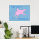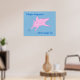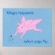 Painting of a pink flying pig with a wand making blue stars, with, "Magic happens when pigs fly," printed on posters. Can easily customise the text on the template form.