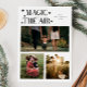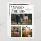Elegant holiday card featuring a text that says "magic in the air" with 3 photos on the front. Add another photo on the back along with your message. Background is white.