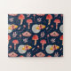 Magic moth and mushroom pattern. Woodland night Jigsaw Puzzle