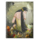 Original art. A maiden has an encounter with a small glowing fairy. The moon is high, candles are burning, a cat is on a branch overlooking the scene.