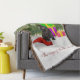 A quality printed throw has its advantages. This is a much finer weave throw than its loopier cousins, and though lighter, it is worth the investment for custom room accessorizing. The back is much prettier than the typical brown, and the fringe on the long sides very vivid, the selvage nicely done. Before photographing, I washed the throw in cold water, delicate, with a thicker woven throw the same size. On tumble dry low, this throw was dry in half the time as the other. This is a very practical quality if you use throws for furniture covers or to wrap up in frequently. The sleekness of the fabric makes it a great layer for accenting or protecting without the feeling of sitting on too much stuff. Perfect for napping or when you feel a light chill coming on. The color printing is beautiful and on this fabric, matched the design and color of my Photoshop image. This is an advantage for blending room fabrics and colors. The fringe on the short sides prints the colors from the design image and therefore varies from the side fringe. I streaked a white fractal line through the plaid pattern to give the illusion of weaving. This printed as crisp as an illusory thread, and put some white in the short side fringe, showing another advantage of print vs loomed- for artistic purposes, line lines, detail, and color integrity can be planned and preserved. My loomed throws have color limitations and more of a needlepoint texture. Print throws reproduce an exact image. The throw felt a little stiff straight out of the package, but this went away in the first delicate wash. Of course I searched the wash water for ink or bleeding and there was none.