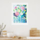 Archival Art Print of traditional watercolour painting featuring waterlilies, lilypads, buds and stems incorporating doodle art. Colours include indigo, pink, green, turquoise and blue. Maximum size 24x32" (60.96 x 81.28cm).