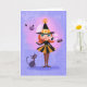 Against a lovely lavender and pink backdrop, a magical good witch uses her enchantments to pamper herself while her curious black cat observes. Original illustration by Noël Snow.