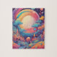 Kids illustration with fairy tale style colourful sky, girly design, gift for kids, gift for girls.