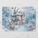 This scene features a beautiful fairy surrounded by woodland creatures including a dragon and horse, depicted in a magical snowing winter wonderland. The watercolor design adds whimsy, magic, and imagination, making it perfect for a Christmas fairy theme.