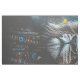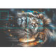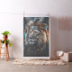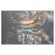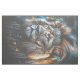 "Lion with beaded headband, colourful feathers, intricate mane, ornamental necklaces, cosmic background, mystical and majestic. 100% cotton fabric, thread count 210, width 56 inches, high-quality, smooth texture, durable, versatile for clothing and home decor.