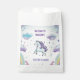 These quirky favour bags are fun and adorable with clouds and magical skies. The colours are purple, blue and pink. It's so fun for a birthday party for a kid. In the centre is a unicorn flying through the skies.