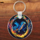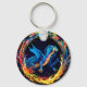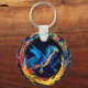 Magical Blue Dragon Surrounded by Mystical Flames Key Ring