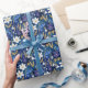 This magical and elegant blue botanical gift wrap features the first spring flowers like snowdrops, wood anemones, dog violets, and bluebells. Using a harmonious colour palette of white, gold, blue, and violet, this design brings a peaceful, calming feeling. The gold glitter used in this print is simulated, not real glitter.
