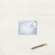 Sticky notes with a magical fantasy sky with fluffy blue clouds and a big beautiful moon. 2 white swans flying off together.