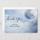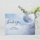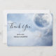 Thank you card with a magical fantasy sky with fluffy blue clouds and a big beautiful moon. 2 white swans flying off together.