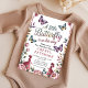 A little butterfly is on her way! Celebrate your baby girl with this enchanting butterfly-themed baby shower invitation. Delicate watercolor flowers, soft pink hues, and fluttering butterflies create a dreamy garden vibe that’s perfect for spring or summer celebrations. Customize with your event details for a beautiful, personalized keepsake that guests will adore.