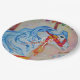 Magical Carousel white horse with blue mane. Beautifully decorated with a hot pink an orange bridle with yellow orange tassels wearing a magenta back blanket. Truly a fun image for children of all ages for all occasions. Custom personalised monogram party paper plates for all occasions. Watercolor design image originates from the designers collection. Enjoy coordinating your party ensemble to express your own Theme. If you want something more particular please contact me at sue.chorney@shaw.ca.
