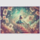With every step, Alice moves closer to a magical castle in the clouds as whimsical cards float past her in this playful design. Watercolor blues, blushes, and golds create a soft, surreal backdrop filled with motion. Perfect for adding charm to decoupage art, collages, or handmade stationery. The scene captures a moment of curious anticipation. An inspiring image for those who believe in impossible journeys. Explore more whimsical fantasy designs in my Alice In Wonderland tissue paper collection!
