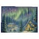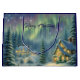 This Gift Bag features a snowy winter forest at night with stars and auroras in the sky. The houses are brightly lit. Beautiful bag for your Christmas gifts! Custom text.