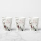 This design conveys the magic of Christmas in a light-hearted nature-inspired winter snow scene in muted watercolor hues. A wild deer is dressed in a warm woollen sweater standing out in the cold snowy scene. A festive garland of white poinsettias hangs around his neck in holiday style. Handwritten type face spells out "Merry Christmas" with a vintage look.