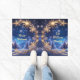 The Christmas season - a time full of wonder, joy, hope, expectations and surprises. This doormat features an golden snowflakes swirl in the blue night sky above the winter forest. Wonderful doormat for the Christmas season - change/remove text!