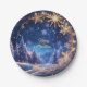 Magical Christmas time - golden snowflakes on blue Paper Plate
