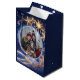 The Christmas season - a time full of wonder, joy, hope, expectations and surprises. This gift bag features an golden snowflakes swirl in the blue night sky above the winter forest with an image of your family, pet or what you like! Wonderful personally gift bag! Custom photo and colour.