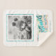 Beautiful Christmas Sherpa blanket featuring teal foil typography of 'A Magical Christmas and Happy New Year'. Design is decorated with berries, mistletoe with a coral accents on a white background. Add your own name(s) and favourite photo using the provided template. Search ID441 to see other coordinating products and additional colour options for this design.