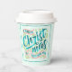 Beautiful Christmas paper cup design featuring teal foil typography of 'A Magical Christmas and Happy New Year'. Design is framed in teal and decorated with berries, mistletoe and coral accents on an optional mint green background. Search ID441 to see other coordinating products and additional colour options for this design.