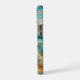 A beautiful magical coastline metal phone case. Pretty shoreline with ocean waves, palm trees, shells, starfish and sea glass.