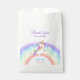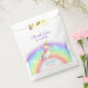 Adorable kid's birthday thank you favor bags featuring a cute watercolor unicorn with pastel rainbow and surrounded by colorful stars. ideal party supplies for your little girls' birthday celebration!