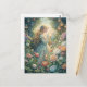 This enchanting postcard depicts a fairytale moment of a young woman holding a glowing light as she wanders through a garden filled with blooming roses and softly glowing lanterns. Her flowing gown and golden hair shimmer in the gentle light, creating a magical, dreamlike atmosphere. Perfect for lovers of fantasy, romance, and ethereal art, this piece captures the beauty of wonder, peace, and imagination.