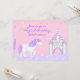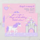 ~This birthday invitations design features a magical purple and white Unicorn. There is a pink and purple fantasy background and castle. Personalise with your birthday girl's name and party details.