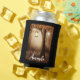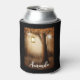 Can cooler with a whimsical enchanting illustration in rich brown and yellow colours. A magical mystical forest with a large tree holding an old fashioned lantern. Fairy lights dancing all around.  An enchanting wonderful design.