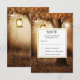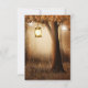 RSVP card with a whimsical enchanting illustration in rich brown and yellow colours. A magical mystical forest with a large tree holding an old fashioned lantern. Fairy lights dancing all around. An enchanting wonderous design.