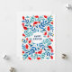 Magical garden - red and turquoise. Watercolor botanical illustration Easter card.