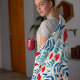 Magical garden - red and turquoise. Watercolor botanical illustration blanket