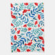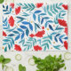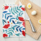 Magical garden - red and turquoise. Watercolor botanical illustration kitchen towel