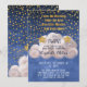 Magical Golden Stars Navy Blue Twins Baby Shower I Invitation
