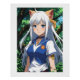 This fascinating Anime poster shows an elegant cat warrior with long white hair, bright blue eyes and cat ears - dressed in a navy blue school uniform with noble details. Surrounded by the lush green of a mysterious forest, it exudes peace, strength and grace. A must for all fans of fantasy, cat girls (Nekomimi) and stylish anime art. Ideal as decoration for your room, anime con stands or as a unique gift for Otakus.