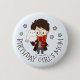 Celebrate your little wizard's big day with this charming "Birthday Girl's Mum" button! This adorable pin features a cute, chibi-style illustration of Harry Potter, complete with his iconic glasses, scar, and a red and gold Gryffindor scarf. Perched sweetly on his arm is his loyal snowy owl, Hedwig. The text "BIRTHDAY GIRL'S MOM" is written in a whimsical font around the image. Set against a soft blue background with colourful pastel stars, this button is the perfect accessory for a mum to wear at her son's magical, Harry Potter-themed birthday party.