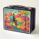 This is a standard metal lunchbox that appears to work just fine. We designed this box ourselves with an uploaded photo and custom text on the front and back. It looks absolutely beautiful except the front of the lunchbox is not centered like it shows in the photo. The print borders don't align with the inset flat part of the box where the preview photo online showed it perfectly centered in there. The back looks nice and centered though.