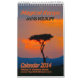 SINGLE PAGE Calendar "Magical Kenya and its Wildlife", available in 2 sizes. Wildlife and bird photography by your safari expert, Christine Eichin, Above and Beyond Africa, 1-877-GO-ON-SAFARI, www.YourSafariExpert.com. (Cheetah, White Rhinoceros, Warthog & Piglets, Hippopotamus, Grevy Zebra, Lion, Red-billed Oxpecker, Leopard, Elephant, Common Zebra, Dikdik, Sunset over the Masai Mara)