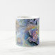 Try saying that 5 times fast! Ceramic mug featuring a "magical meeting" between a dolphin and a unicorn, as depicted by Jo Wall.