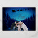 Bring sparkle and wonder to your holiday greetings with this luxury silver foil Christmas card. The front design features dazzling real silver foil stars and lettering, shining beautifully against a deep blue starry night sky. A silhouette-style photo cutout allows you to insert your own family picture, making it look as though you’re standing beneath Santa’s sleigh as it soars over a snowy forest backdrop, a truly magical holiday scene!