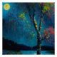 Magical Moon River Tree in the style of an oil painting. Moonlight glistening on the river, flowers on the bank, mountains in the background. Romantic and mysterious.
