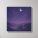 Immerse yourself in a magical moonlit village nightscape that blends fantasy, emotion, and elegance. This square-format design captures a peaceful mountain village nestled beneath a dreamy starry sky, with swirling clouds and radiant celestial elements. The glowing windows and golden moonlight evoke warmth and serenity, while the rich palette of purples and blues adds depth and wonder. Perfect for lovers of whimsical night illustration and celestial landscape design, this artwork touches the heart and inspires the imagination.