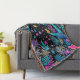 A quality printed throw has its advantages. This is a much finer weave throw than its loopier cousins, and though lighter, it is worth the investment for custom room accessorizing. The back is much prettier than the typical brown, and the fringe on the long sides very vivid, the selvage nicely done. Before photographing, I washed the throw in cold water, delicate, with a thicker woven throw the same size. On tumble dry low, this throw was dry in half the time as the other. This is a very practical quality if you use throws for furniture covers or to wrap up in frequently. The sleekness of the fabric makes it a great layer for accenting or protecting without the feeling of sitting on too much stuff. Perfect for napping or when you feel a light chill coming on. The color printing is beautiful and on this fabric, matched the design and color of my Photoshop image. This is an advantage for blending room fabrics and colors. The fringe on the short sides prints the colors from the design image and therefore varies from the side fringe. I streaked a white fractal line through the plaid pattern to give the illusion of weaving. This printed as crisp as an illusory thread, and put some white in the short side fringe, showing another advantage of print vs loomed- for artistic purposes, line lines, detail, and color integrity can be planned and preserved. My loomed throws have color limitations and more of a needlepoint texture. Print throws reproduce an exact image. The throw felt a little stiff straight out of the package, but this went away in the first delicate wash. Of course I searched the wash water for ink or bleeding and there was none.