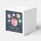 This magical favour box features imaginary planets, moon and stars in pink, purple, navy and gold colorway.