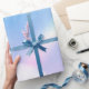 Wrapping paper with a soft and lovely background image. Pastel blues and pink clouds with a magical rainbow.