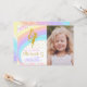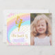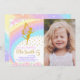 Invite your guests to a magical celebration with this rainbow fairy birthday invitation featuring your child’s photo! With dreamy pastel colours, an adorable fairy design, and space for a custom photo, this card is perfect for fairy-themed parties, whimsical birthdays, and magical celebrations for girls. Easily personalise all text and upload your photo with just a few clicks.